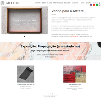 Arttere é um espaço criado para todos os profissionais envolvidos no amplo universo das artes, possibilitando que as pessoas exponham seus trabalhos e perfis livremente sem custos.