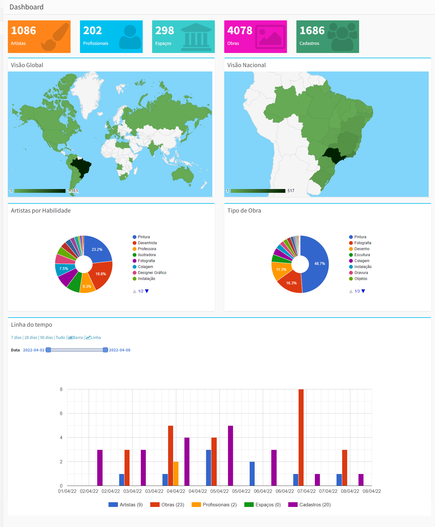 É também um centralizador de atividades culturais com agenda de eventos, informações sobre museus, galerias e fundações e oportunidades no mundo artístico como concursos, salões, exposições, leilões, entre outros.